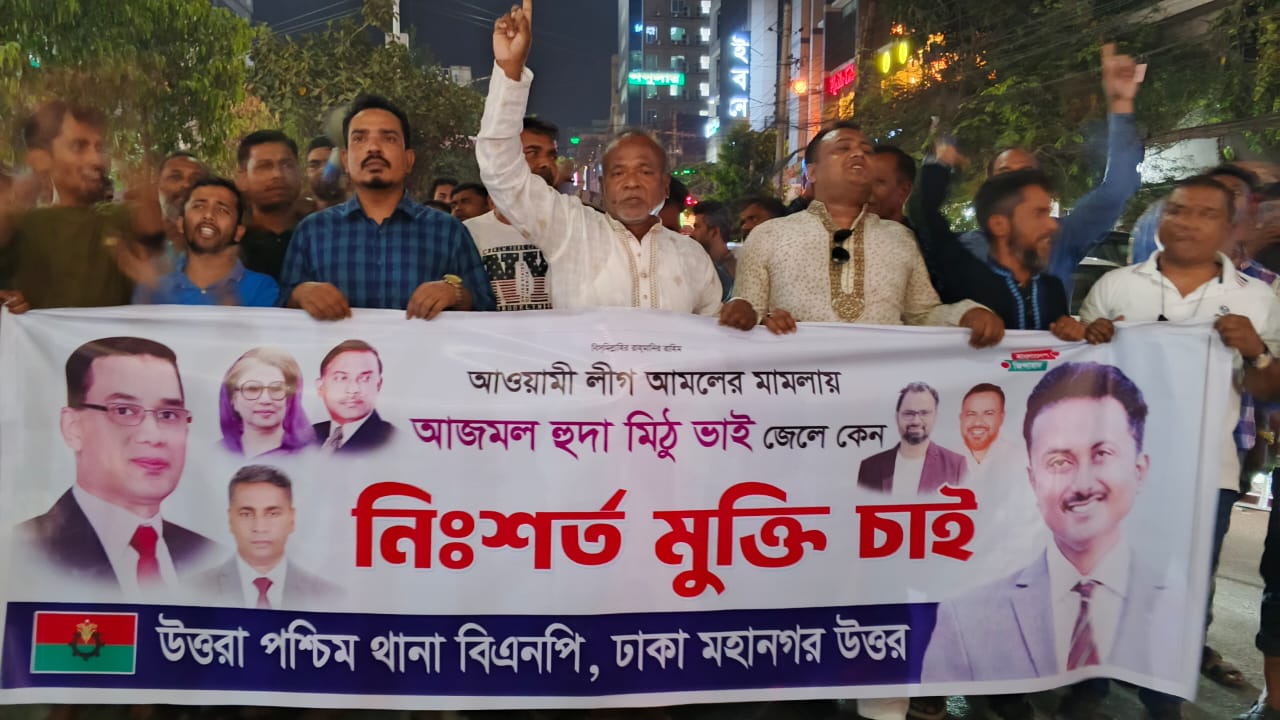 ইসমাঈল হোসেন শামীম : উত্তরা পশ্চিম থানা বিএনপির সাবেক সিনিয়র যুগ্ন আহবায়ক আজমল হুদা মিঠুকে গ্রেপ্তারের দাবিতে উত্তরায় বিক্ষোভ মিছিল করেছে দলের নেতা কর্মিরা।