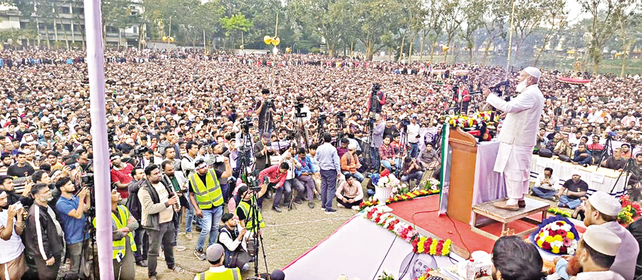 জনসভায় জামায়াত আমির বগুড়ার সাতটি আসনের প্রার্থীদের হাতে নির্বাচনী প্রতীক তুলে দিয়ে তাদের বিজয়ী করার আহ্বান জানান।
