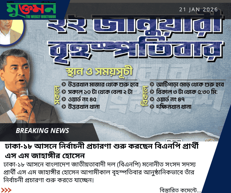 Contact : +8801822288799 (WhatsApp), E-mail : muktomonnews@gmail.com, Office : 56, A.H Tower (4th Floor), Sector-3, Road-2, Azampur, Uttara, Dhaka-1230.