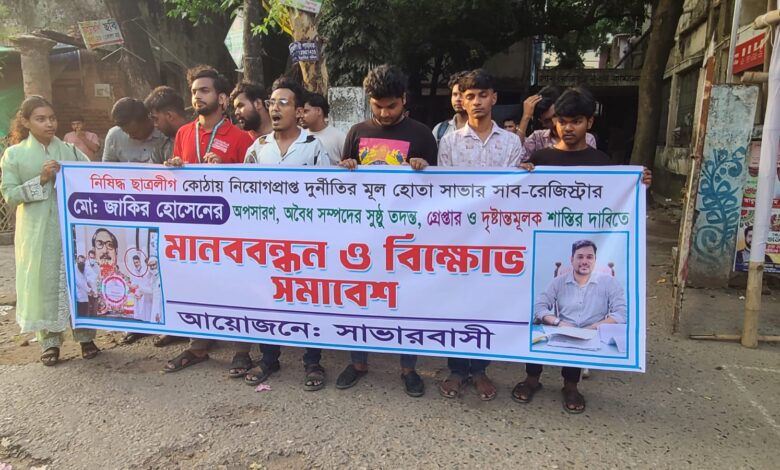 সাভারে সাব-রেজিস্ট্রার জাকিরের অপসারণ দাবিতে বিক্ষোভ, ২৪ ঘণ্টার আল্টিমেটাম